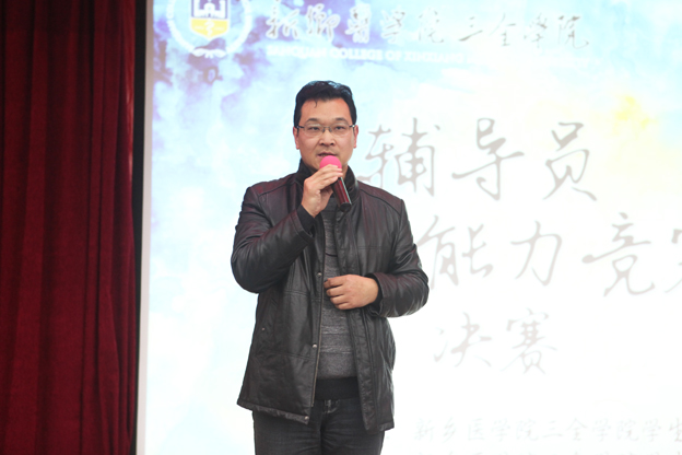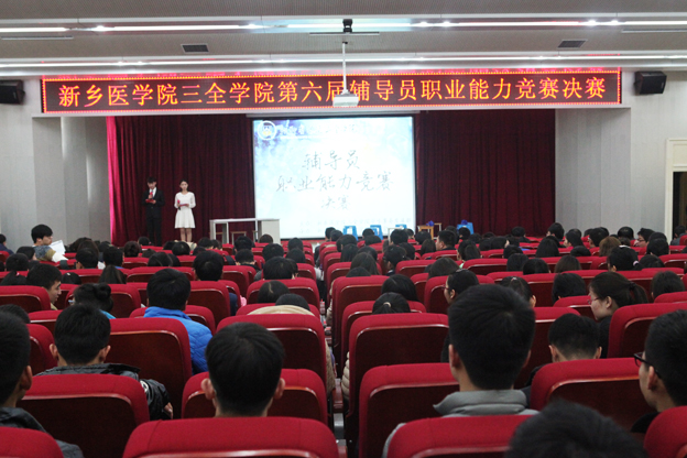 12月11日晚,我院第六届辅导员职业能力竞赛在新乡校区问学楼学术报告厅举行。新乡医学院管理学院党总支副书记蒋利国新乡医学院心理学系党总支副书记马帅我院党委副书记王金文,发展战略与考核部主任顾欢,大学生就业创业指导服务中心主任张东担任评委