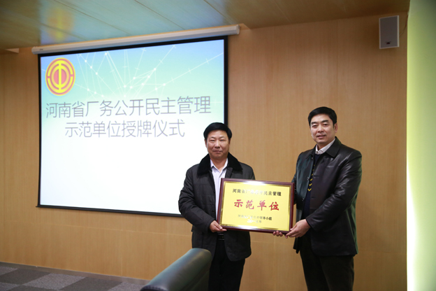 我院举行河南省厂务公开民主管理示范单位授牌仪式