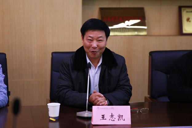 仪式开始王志凯向张林方一行介绍了我院现状,并对2015年工作进行总结。他说,我院办学主体进一步向平原校区迁移,平原校区一期建设在今年已经完成,2015年学校工作稳定,招生再创佳绩。同时,王志凯对新乡市市委政府和平原新区政府的关怀、爱护和指导表示感谢。