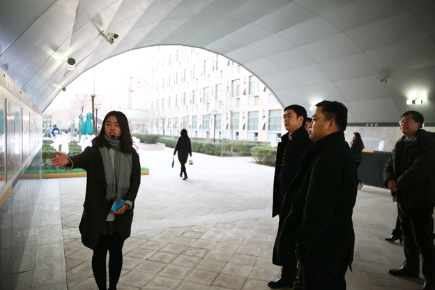 仪式结束后,张林方一行在张钢的陪同下先后参观了我院学生事务发展部服务大厅、第一教学楼、精诚书院和体育馆,了解了我院“双院制”的办学理念,感受了我院对师生的人文关怀。