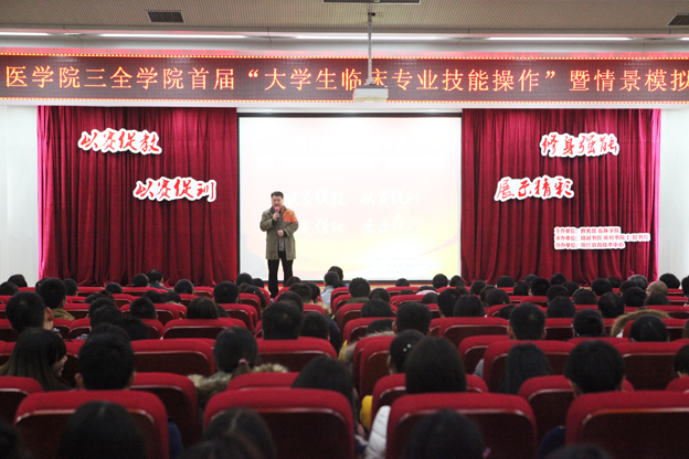 比赛伊始,王洪兴为大赛致辞他强调临床技能操作是我院以培养岗位胜任力为目标的应用性人才的重要环节,要加快建立科学、系统、规范化的临床技能培训体系,规范教学行为,锻炼师资队伍,形成比、学、赶、帮的教学氛围,为实现学院长远发展奠定坚实基础。