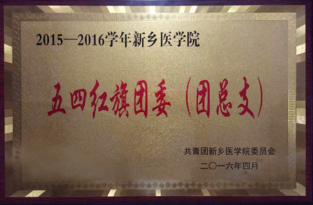 54日下午,在新乡医学院第一学术报告厅举办的纪念五四运动97周年暨2015-2016学年共青团工作表彰大会上,我院团委被授予“五四红旗团委荣誉称号。