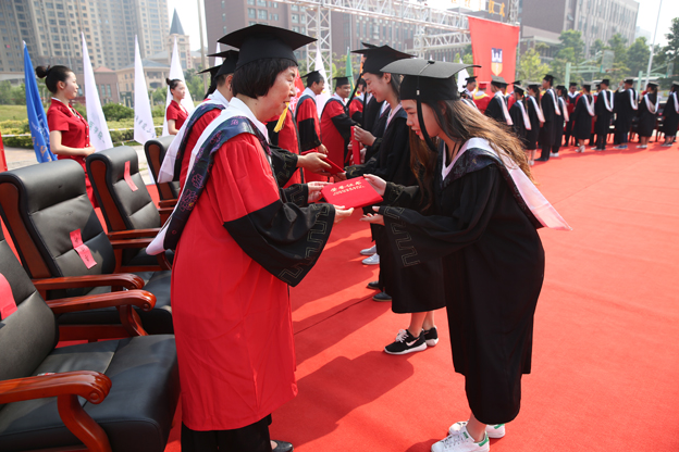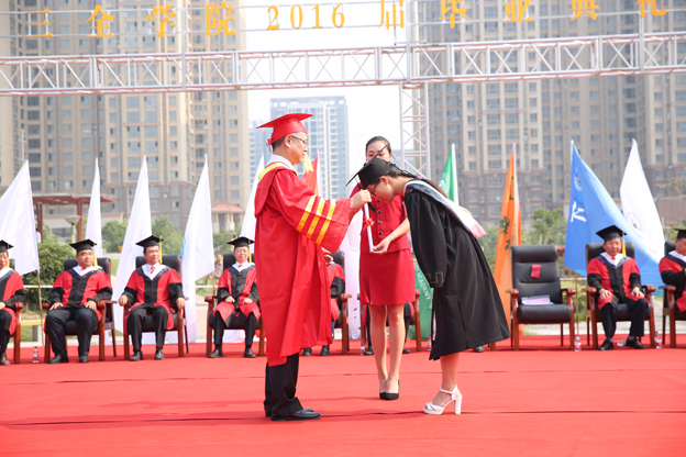 最后,在神圣庄严的气氛中,杨捷院长为学士学位获得者代表扶正流苏,授予学位证书。党委副书记王金文宣读《新乡医学院三全学院关于表彰2016届优秀毕业生的决定》,出席领导与专家委员为“省级优秀毕业生”和“校级优秀毕业生”代表颁发证书。