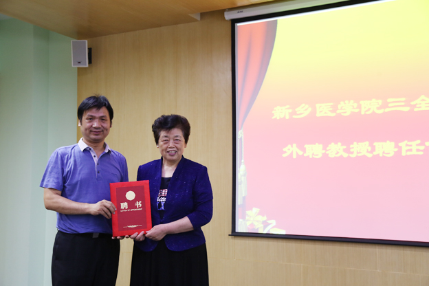 聘任伊始,王彦杰向渠桂荣介绍了三全学院目前的发展情况,并表示希望以本次合作为契机,将药学院乃至三全学院的发展提上一个新的台阶。随后我院药学院院长闫福林分析了药学院的发展形势,他希望渠桂荣能够指导药学院的科研平台建设,加快与企业的深度合作,促进更完善的“产--研”发展。最后王彦杰向渠桂荣颁发了药物化学学科带头人聘书。