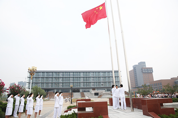 8月22日清晨,我院在平原校区隆重举行2015-2016学年第一学期首次升国旗仪式,学院党委副书记王金文以及1000余名师生迎着朝阳列队参加。