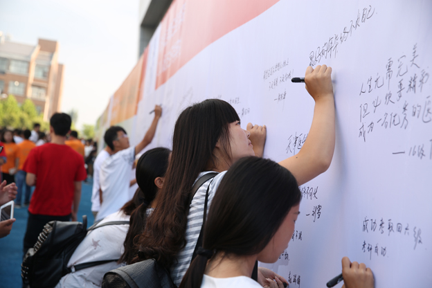 典礼开始前,各书院新生纷纷在场外“梦想墙”上书写自己的梦想,砥砺自己不忘初心、全新起航。在学院视觉识别系统展区,同学们踊跃和学院校徽、校标、吉祥物“全全”合影留念,成为典礼期间的一道亮丽风景。