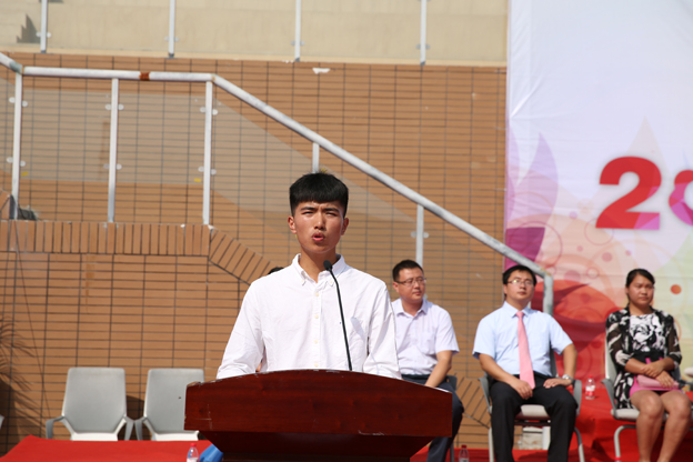学生会主席李少昌发言。他希望学弟、学妹们秉承“三全精神”,心怀理想,脚踏实地,充分利用学院的有利资源,刻苦学习,锐意进取,提升自我,突破自我,在大学校园绽放青春光芒。