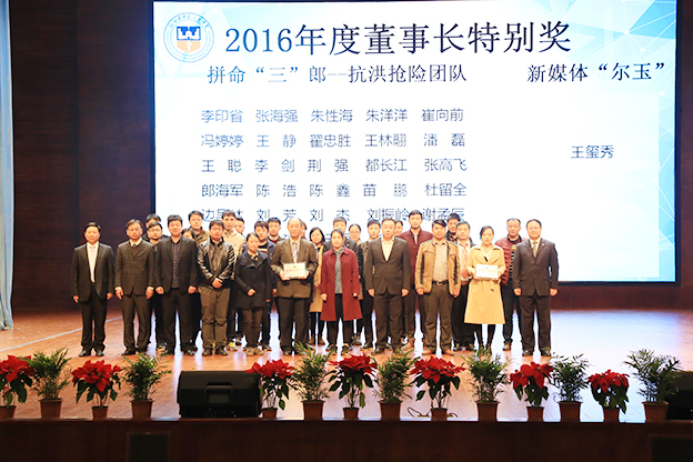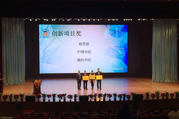 会议首先表彰了“2016年度十佳人物”:郭立喜、张紫阳、翟莎莎、郝诗亮、李剑、刘璐、李薇、卢明臣、杨杰、刘巨源;“目标完成先进单位”:人力资源部、校园网络管理中心、党务办公室、生命科学技术学院、思想政治理论课教学部、德馨书院;“进步奖”:人力资源部和药学院;“创新项目奖”:教务部、护理学院、羲和书院;“董事长特别奖”:拼命“三”郎---防汛抢险团队、新媒体“尔玉”---王玺秀。院领导依次为获奖单位和个人颁奖。