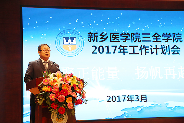 随后,王志凯作学院2017年工作部署。他回顾了学院2016年的工作,过去的一年是我们实现“十三五”良好开局的一年,全体三全人用智慧、汗水斩获了一个个激动人心、催人奋进的骄人成绩,学院的转型发展初见成效,教育教学改革扎实推进,学工体系和“双院制”育人模式日臻完善,招生就业再创新高,基础条件建设逐渐完备,科研创新实现国家级项目立项零的突破,学院的知名度、美誉度持续提升,并荣获“全省先进社会组织”、“河南省民办教育行业知名品牌”等荣誉称号,我们的发展成果得到了社会各界的一致认可。