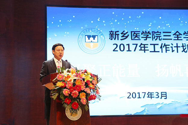 王志凯从“完善顶层设计,深化体制机制改革;坚持立德树人,提升教育教学质量;优化学工体系,激发人才培养活力;强化师资保障,提高人才队伍建设水平;改善办学条件,夯实转型发展根基;加强组织保障,凝聚学院发展向心力”等六个方面对学院2017年工作做了整体部署。王志凯强调,“安不忘危,盛必虑衰”,面临错综复杂的教育发展形势,我们仍然要保持忧患意识和危机意识,斗志昂扬,激情饱满,在高等学校转型的浪潮中一马当先、力拔头筹,为把学院建设成为地方性、高水平、有特色的新型高等医学院校而努力奋斗!