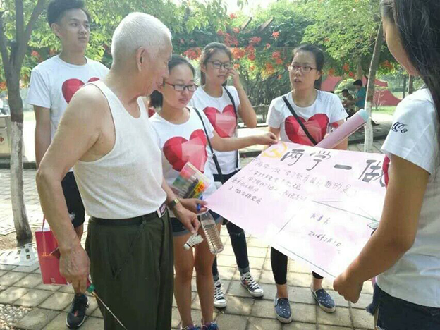 在这里,我们与老红军们一起庆祝党的生日,并听他们讲那些革命往事。更幸运的是:我们听到了两位抗战老兵的即兴演讲,他们其中一位是抗日战争老兵,另一位是解放战争的老兵。在他们的演讲中我们感受到了战争时期的困难条件,也懂得了今天的和平来之不易。第一位荣军爷爷给我们讲述了在抗日时期毛主席与蒋介石重庆谈判时,荣军爷爷和他的战友们为了给毛主席增加谈判筹码,一直在后方努力着。条件很艰苦,没有粮食他们就挖树根吃树根,没有住的地方他们就住在大家不住的危房空房里,后来谈判很顺利,然而大家没高兴多长时间,蒋介石单方面撕毁“双十协定”,后来战争愈发艰难,荣军爷爷的战友也有很多都在这次战争中牺牲!老荣军们艰苦奋斗,自强不息的精神感动了团队成员。他们表示,虽然贫困,但要像荣军爷爷们学习。