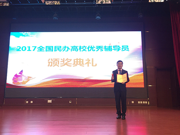 4月27-28日,第三届全国民办高校辅导员工作高峰论坛暨第二届全国民办高校优秀辅导员颁奖典礼在云南昆明举行。我院辅导员赵超建荣获“全国民办高校优秀辅导员”称号,并在辅导员交流会上做《崇德立人新风貌 与你同行共成长--班级,我与你同行》报告,获得了同行的一致认可。