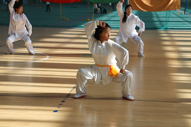 此次比赛分为表演项目、团体项目、集体项目三个项目,设为优秀团体奖、表演奖、集体奖。比赛在同学们的欢呼和呐喊中拉开帷幕,所有参赛对员穿着传统武术服装,时而跳跃,时而翻转,动迅静定、闪转腾挪体现出了传统武术的不同风格特点。各个书院的表演特点鲜明,动作规范,动静相宜、收放自如,舞台上的精彩表演引来台下观众的欢呼。参赛队员充分地向大家展示了平时刻苦训练才会有好的成绩。无论是刚柔并济的太极拳,还是滚入滚出的少林拳,亦或是灵动优美的剑姿,亦或是红缨飞舞,无不彰显着中华武术的博大精深。在最后的集体项目中,和着宛转悠扬的琴声,选手们时而沉肩坠肘、以意行气,时而上下相随、招势相连 ,他们用一招一式展现着武术的宁静致远,刚劲有力。他们坚毅的脸庞表达着对武术的热爱,激扬的斗志诠释着青春的魅力。观众热情饱满,场内掌声、加油声此起彼伏,欢呼声响彻整个体育馆。