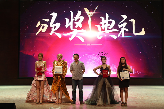 经过层层选拔,共有十位选手入围决赛。比赛分为专业组和兴趣组,每组各五位选手,参赛内容为“创意妆容”,选手们需在一个小时内完成自己设计的作品,并搭配创意服装与妆容进行展示。比赛伊始,十组选手开始在舞台两侧紧张有序的筹备自己的作品。一个小时后,选手们完成华丽蜕变,现场迎来了比赛的高潮-选手魅show。随着音乐的节拍,模特们扬起自信的微笑,走向T台前端,展示自我,同时各组选手对作品的创作主题、创作理念、创作方法及灵感来源进行解说。其中,专业组3号选手冯雅澜的灵感来自于热播剧《人民的名义》,用“纸币”拼接的长裙别出心裁,提示大家对金钱“取之有道”;兴趣组4号选手杜艳楠的创作灵感来自于对未来工作的憧憬,小故事大梦想,只有心怀梦想,才能方得始终。选手们的创意鲜明又贴近生活,妆容和服饰的搭配相得益彰,为观众们带来一场华美的视觉盛宴。