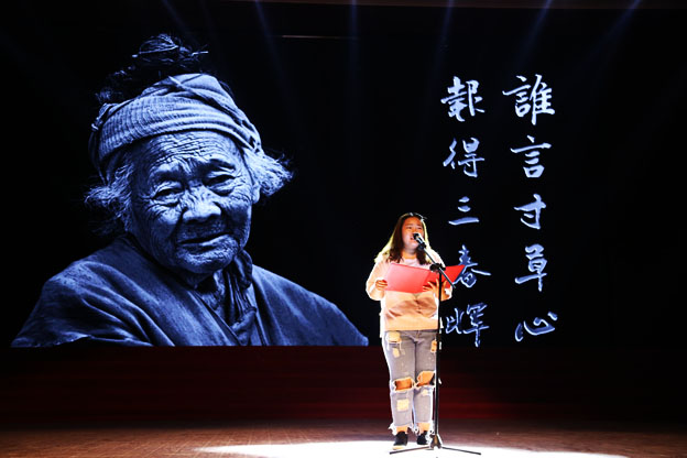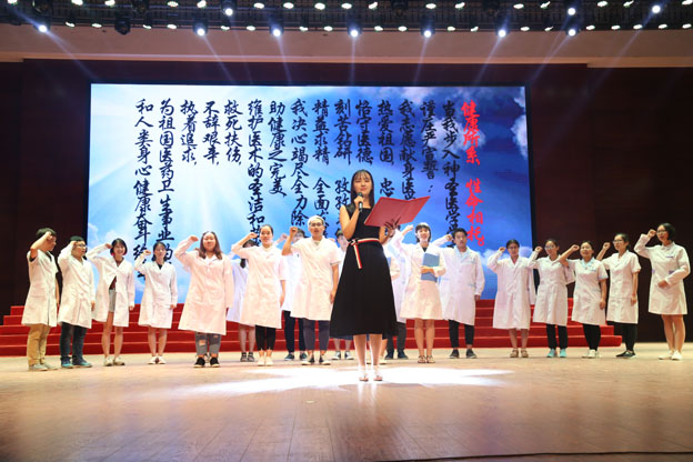 525日晚,我院第九届大学生心理健康节“爱青春,爱成长,爱朗读”系列活动之“致敬青春,心语朗读”在闻德礼堂举办。我院党委书记王志凯出席,相关职能部门和各书院负责同志、各书院心理辅导站老师,心理健康教育教研室全体老师与1000余名同学一同参与活动。活动以广播台特别节目“致敬青春,心语朗读”形式开播,两位电台主持人用优美的嗓音读着卓别林的散文诗《当我开始爱自己》,带我们渐渐走进心灵深处。羲和书院王贺饱含深情地朗读《写给爸爸的信》,诠释对父亲的爱和误解;德馨书院杜玲玲讲述了自己因叛逆而留下了青春的遗憾,她演讲结束时,母亲的意外出现让她感极而泣,两人紧紧相拥,台上台下都湿了眼眶;德馨书院李泓玥弹一曲《父亲写的散文诗》,唱出一段父亲的故事,紧扣心弦;仁智书院张一丰用自己不服输、不放弃的复读经历和一首《青春,走过一段弯路也无妨》抒发了自己对未来的期待以及坚定一直努力下去的决心。现场还有这样一位老人,万事归来,心态仍似青年模样,苍劲抖擞,坚守三尺讲台,他就是冯天祥教授,他白发皑皑,却深情款款,他用一首《朱生豪的情书》诠释了自己对爱人、对医学教育的热爱,全场无不为之动容;更有基础医学院副院长苗莹莹和崇德书院辅导员、我院第七届辅导员技能竞赛一等奖得主张晟烨老师带来精彩朗诵,将活动又一次推向高潮;一段《人间世》,一首《青春恋歌》,让我们看到残酷的现实,也听得青春的美好,提醒我们健康所系,性命相托;医路漫漫,不忘初心。最后,全体师生起立朗诵医学生誓词,活动在朗朗书声中渐渐落下帷幕。
