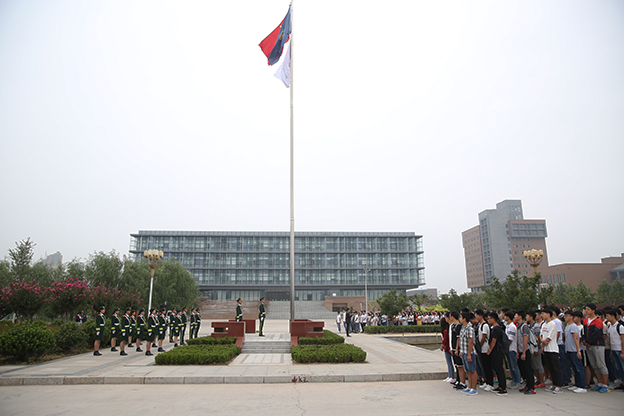 8月28日清晨,1000余名师生迎着晨曦,在平原校区闻德广场隆重举行2017-2018学年第一学期首次升旗仪式。我院党委副书记王金文、学务长邱永建出席,学务部及各书院负责人共同参加。