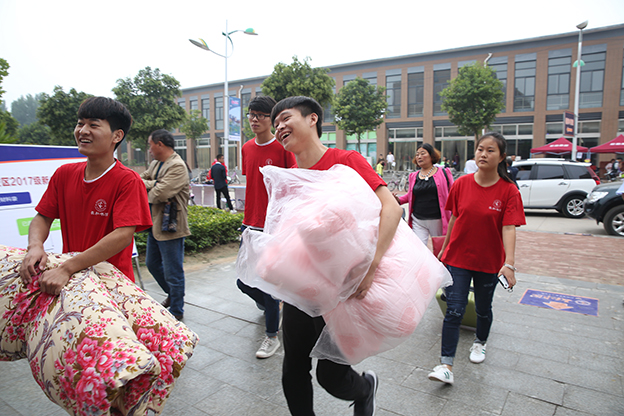 学院在郑州火车站、郑州高铁站等地方设立了迎新点,3辆大巴车不间断接送学生及家长来校报到,实现了校内外流转通道无缝对接。为适应校外311省道新修后的变化,确保行车安全,经多方协调,平原新区交警大队及祝楼乡派出所派出10名交警及治安警协助保卫科80余名保安在校门口维持交通秩序。近千名志愿者,遍布校园各个角落,维持交通秩序并开展服务工作。校门口8辆迎新服务电瓶车往来接送新生和行李。