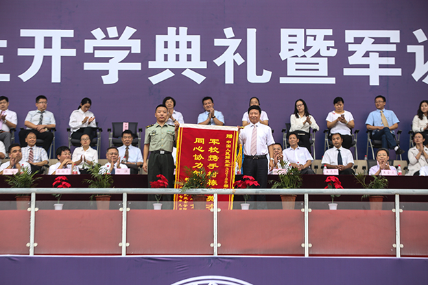 汇报演出结束后,学院党委副书记王金文宣读《新乡医学院三全学院关于表彰2017级军训先进集体、军训优秀学员的决定》,出席领导为获奖者颁奖。王志凯代表学院向中国人民解放军32145部队赠送锦旗。