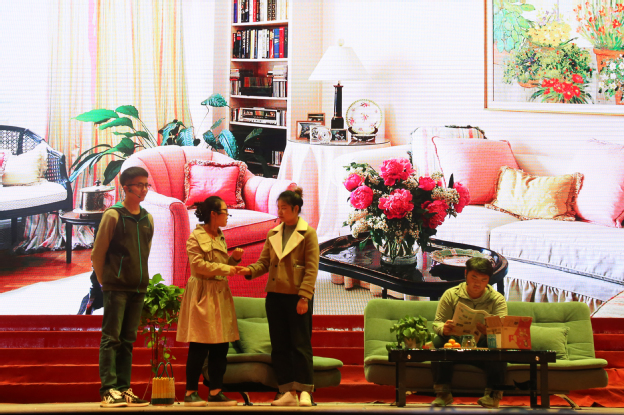 演出通过朗诵、舞台剧、小品等方式表达书院学子的敬老、爱老之情。舞台下,座无虚席。舞台上,生动有趣。