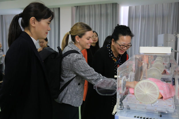 11月6日下午,美国护理联盟模拟教学专家Amy Kline、挪度公司大中华区总经理陈纬国、挪度公司全国销售市场总监莫清、挪度公司区域经理胡玲莉、郑州美中公司总经理张宇一行来我院交流。