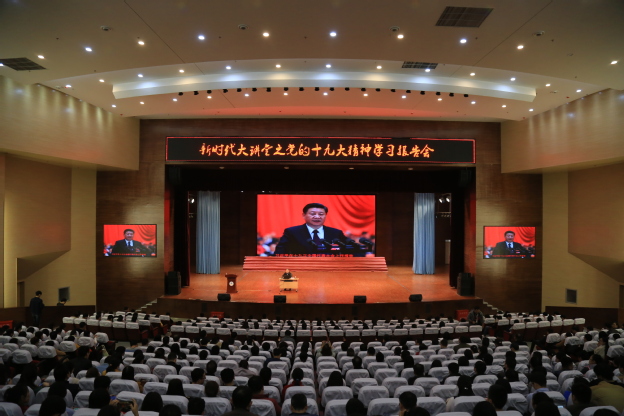 聚焦新时代,开启新征程。为深入学习贯彻党的十九大精神,深刻领会报告实质,11月10日下午 ,我院“新时代大讲堂”在闻德礼堂开讲。河南省社会科学院原副院长刘道兴教授受邀为我院党员干部作十九大精神专题学习报告会。学院党委书记王志凯,党委副书记王金文、张钢,副院长沈雁霞,教育总督导毛兰芝、学务长邱永建,全体中层管理人员,全体教师及学生党员、入党积极分子共计800余人共同聆听了报告。王志凯主持报告会。