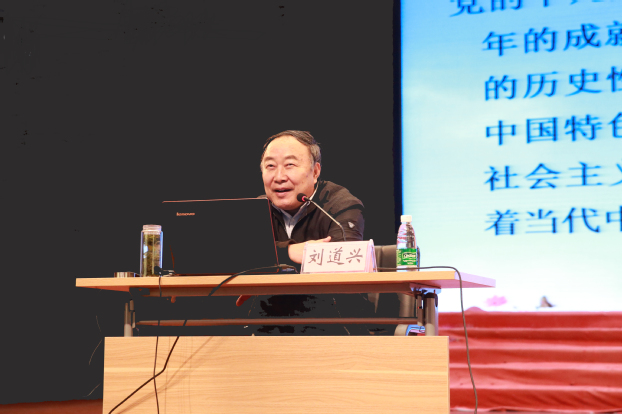 刘道兴教授以《十九大报告的理论创新和重大意义》为题,从党的十九大的主题和主要成果、过去5年的历史性成就和历史性变革、中国特色社会主义进入新时代、我国社会主要矛盾的变化、“两个没有变”的中国基本国情、新时代中国共产党的历史使命、习近平新时代中国特色社会主义思想、“十四项”基本方略、新“三步走”战略、我国经济建设、政治建设、文化建设、社会建设、生态文明建设等重大战略部署、全面推进党的建设新的伟大工程等20个方面,对党的十九大精神进行了系统、全面、深入的讲解。刘道兴强调,习近平新时代中国特色社会主义思想,以更宽广的视野、更长远的眼光思考和把握我国发展面临的一系列重大战略问题,在理论上不断拓展新视野、作出新概括,从理论和实践的结合上系统回答了在新时代坚持和发展什么样的中国特色社会主义、怎样坚持和发展中国特色社会主义,是党在新时代具有很强思想性、战略性、前瞻性、指导性的行动纲领。