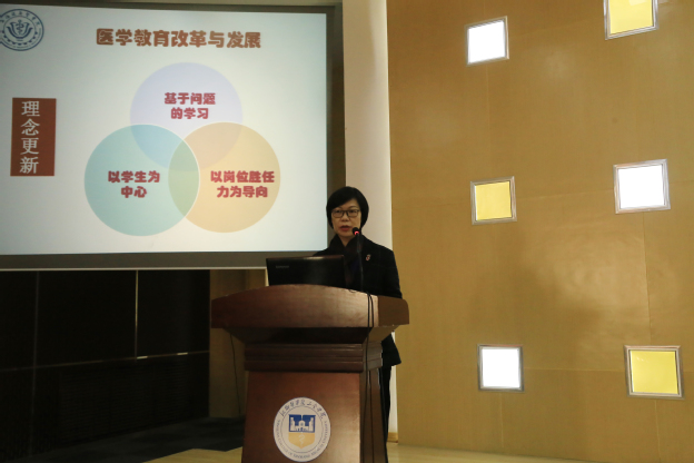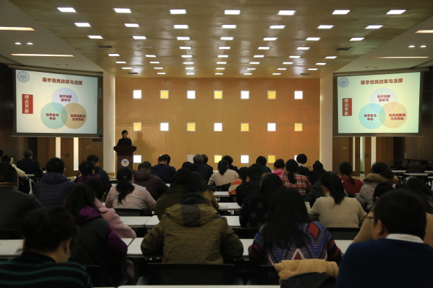 11月20日上午,上海健康医学院临床医学院院长蔡巧玲教授应邀来我院做《医学教育发展及评估与保障》专题报告。报告会在平原新区办公楼三楼学术报告厅举行,我院教育总督导毛兰芝、教务长杜华贞出席,临床学院、基础医学院、教务部等相关部门负责人及教师200余人到场聆听。
