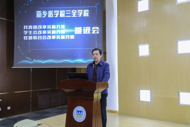 为贯彻落实《新乡医学院三全学院共青团改革实施方案》《新乡医学院三全学院学生会改革方案》《新乡医学院三全学院社团联合会改革方案》文件精神,11月22日下午,共青团相关改革推进会在平原校区行政楼学术报告厅举行。我院党委副书记王金文,学务长邱永建出席,全体学工人员及二级学生组织指导老师参加。