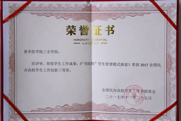 11月23至26日,第六届全国民办高校学生工作创新研讨会在广州举办。我院学生工作成果《“书院制”学生管理模式探索》荣获2017年全国民办高校学生工作创新三等奖。