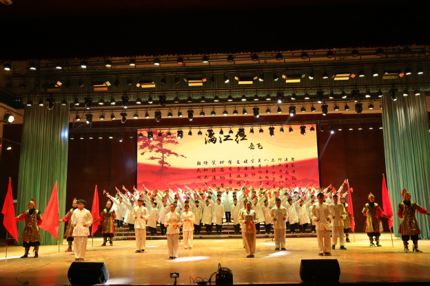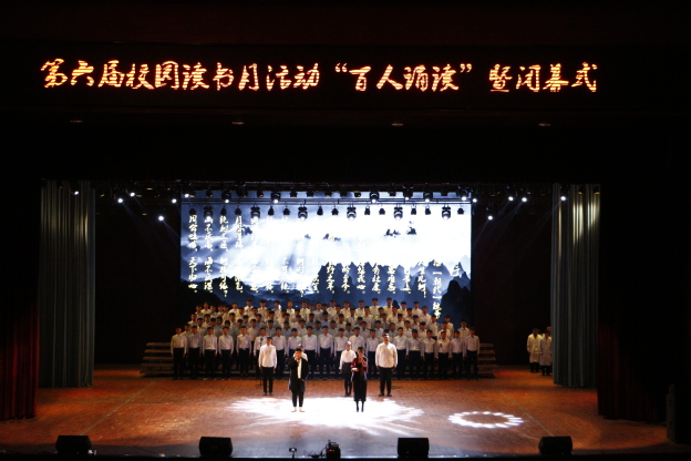 活动开始前,全体起立,齐唱国歌。本场比赛分为诵读和舞传经典两个环节,展示书院特色与魅力。“五花马,千金裘,呼儿将出换美酒。”仁智书院百名学子齐朗诵李白的《将进酒》,带领大家走近李白,感受他的羁傲不训、自信豁达;“彼老朽者何足道,彼与此世界作别之日不远矣,而我青年乃新来而与世界为缘”;羲和书院的《青年中国说》激荡着青年人的热血方刚,振聋发聩;而精诚书院的《沁园春,雪》朗诵人员全体身着军训服,不仅赞美了祖国山河的雄伟和多娇,更赞美了今朝的革命英雄,抒发毛泽东伟大的抱负及胸怀;此外,还有崇德书院带来的曹操的《短歌行》,表现了曹操举酒狂饮,慷慨而歌之的悲壮场景;德馨书院带来的岳飞的《满江红》,表达了德馨学子“功名是我所期,企与尘土同埋”的的壮志豪情,同样使全场沸腾。