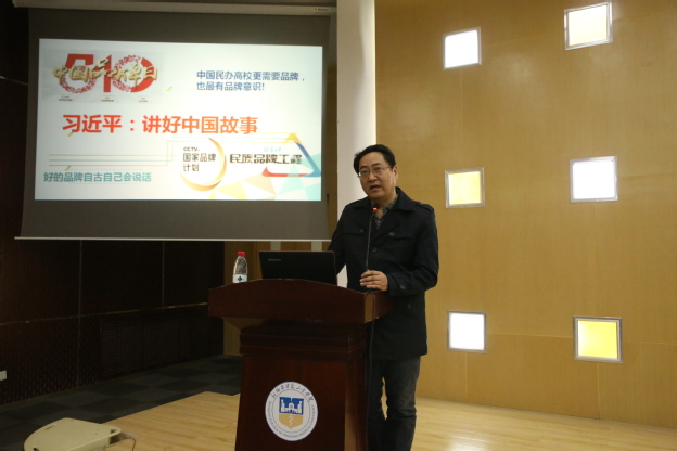 为促进学院的品牌建设,提升全院师生的品牌意识,11月29日上午,郑州大学广告系主任、博士生导师颜景毅教授应邀为我院师生做“民办高校品牌建设的路径和策略”的讲座。学院党委副书记张钢出席,全院各单位负责人、教师通讯员、学生记者等100余人参加。讲座由资讯中心主任助理王德胜主持。