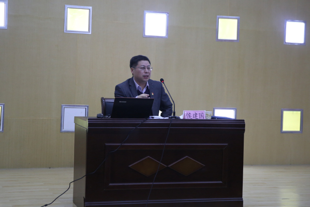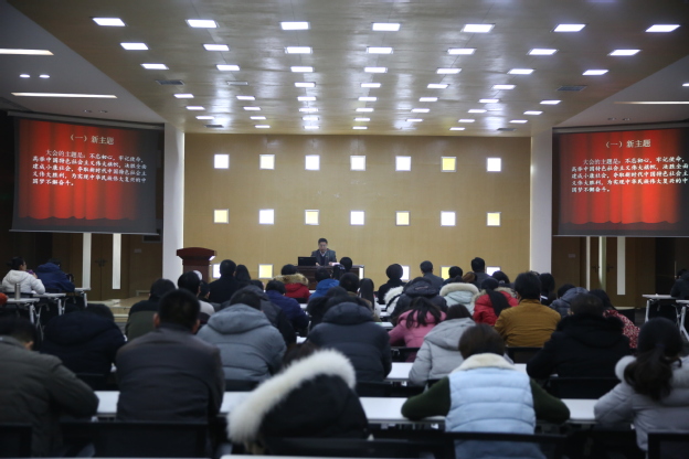 为深入学习贯彻党的十九大精神,切实推动党的十九大决策部署在我校全体党员、干部范围内落地生根、开花结果。1月16日上午,新乡医学院纪委副书记、新乡医学院十九大精神宣讲团成员侯建国受邀做客我校“新时代大讲堂”,为我校党员干部作十九大精神专题学习报告会。学校党委书记王志凯,党委副书记王金文、张钢,副院长沈雁霞,教务长杜华贞,学务长邱永建出席。中层管理人员、党支部书记、教师党员代表150余人聆听。学习报告会由张钢主持。