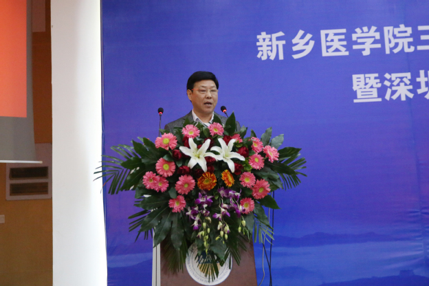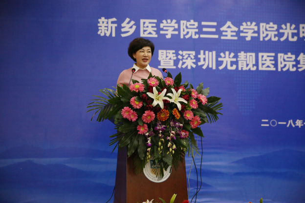 王志凯介绍我校基本情况并致欢迎词。他讲述了三全学院的创办历程、发展成绩及光明眼科学院成立的背景,并对来访嘉宾致以热烈欢迎。他指出,近年来,我校紧密围绕区域经济结构调整和产业转型升级,主动对接郑洛新自主创新示范区和国家创新驱动发展战略,坚持培养优秀应用型医学人才这条主线,优化学科专业结构,创新人才培养模式。学校在转型发展和产教融合方面走在了同类高校前列,光明眼科学院成立就是我校在深入贯彻“十九大”精神,深化教育领域综合改革背景下成立的首个行业学院。