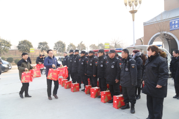 在两校区的保卫科等处,校领导与坚守岗位的职工亲切握手交谈,向各部门工作人员表示衷心的感谢和新年的问候,并为值班人员送来了节日慰问品,祝愿他们及家人在新的一年里身体健康,工作顺利,阖家幸福。