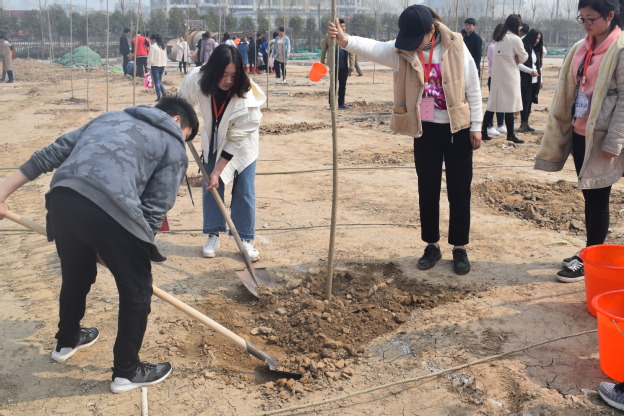 3月12日下午,我校第四届植树节活动在平原校区实训中心西侧举行。我校党委副书记张钢、副院长沈雁霞、教育总督导毛兰芝、后勤总监马波、财务总监王延生出席,相关部门负责人及老师代表带领百名学生现场植树。