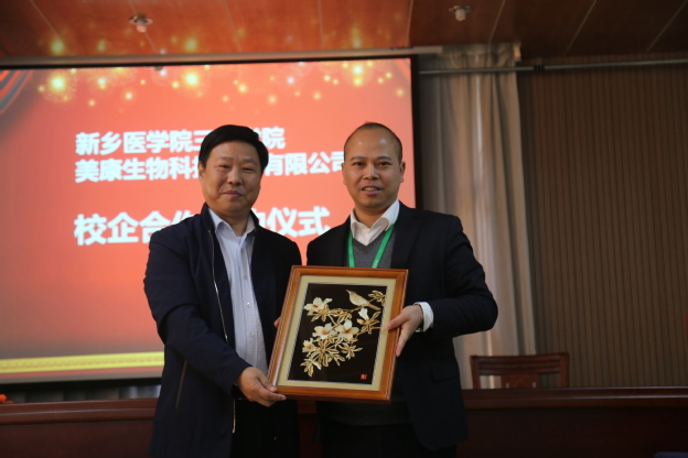 黄金龙代表公司对我校领导一行表示欢迎,他介绍了美康生物科技股份有限公司的发展历程、产品研发和市场经营、管理及校企合作方面的现状及未来的发展方向。