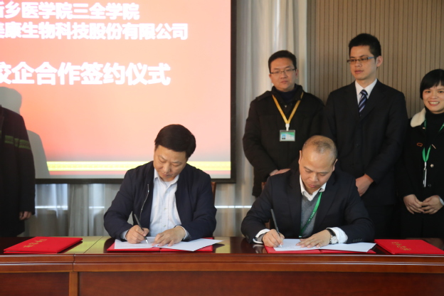 随后,王志凯与邹炳德签署了《新乡医学院三全学院与宁波美康生物科技股份有限公司校企合作协议》,宁波美康生物科技股份有限公司将在我校设立“美康特色班”和“美康奖学金”;双方达成了共享资源,搭建产学研平台,建立实习就业基地等多项内容,仪式在和谐融洽的气氛中圆满结束。
