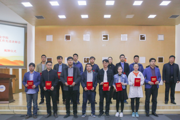 王志凯、秦国亮分别为医学工程学院、临床学院、总务部、护理学院、教育技术中心等5个先进单位,姬国杰、王晨波、边吴林等16位优秀个人颁奖并合影留念。