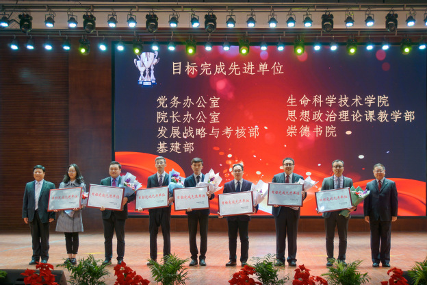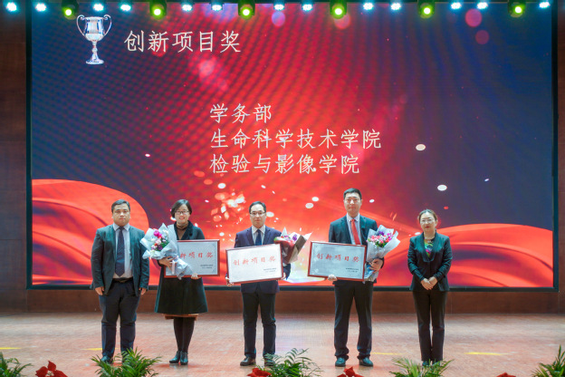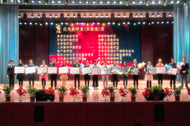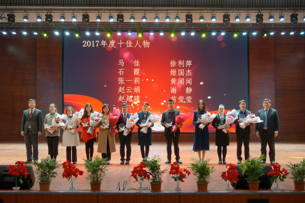 会议表彰了“2017年度十佳人物”:马佳、石霞、张一莉、苗莹莹、赵云娟、赵超建、徐利萍、姬国杰、黄闻闻、谢静;“优秀教研室(实验室)”:素质体验教研室、价值情怀教研室、化学教研室、人体解剖学教研室、助产教研室、生物化学与仪器学教研室、卫生事业管理教研室、外总教研室、药理学教研室、发酵工程教研室、电子技术教研室、英语专业教研室、毛泽东思想和中国特色社会主义理论体系概论教研室、武术与体操教研室、现代生物学实验室;“创新项目奖”:学务部、生命科学技术学院、检验与影像学院;“进步奖”:纪检监察审计部、医学工程学院、仁智书院;“目标完成先进单位”:党务办公室、院长办公室、发展战略与考核部、基建部、生命科学技术学院、思想政治理论课教学部、崇德书院。学校领导依次为获奖个人和单位颁奖。