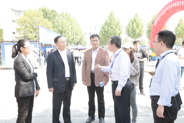 学校党委副书记王金文到双选会现场各书院服务台前慰问工作人员并与各院系、各书院相关负责人进行交谈,详细询问了各专业的就业情况。随后,他走到用人单位招聘展位区,与部分用人单位招聘负责人和工作人员进行交流,询问用人单位的招聘意向和岗位设置,并向招聘方对我校就业工作的支持表示感谢。