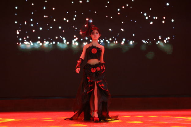 娄娟进行点评。她从妆容创意、服装剪裁、颜色搭配、灵感来源等对参赛选手进行详细的点评。她表示对专业组6号选手亚腾月的《绿篱仙子》印象深刻从服饰到妆容完美结合,尤其是头饰设计灵动大气,服装配以配以薄如蝉翼的翅膀,仙气十足。