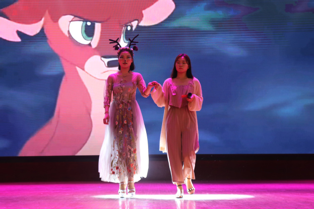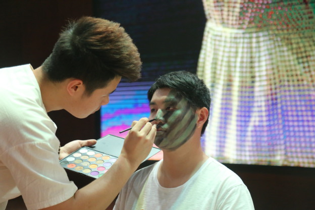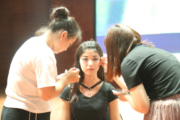 经过层层选拔,共有十四位选手入围决赛。比赛分为专业组和兴趣组,每组各七位选手,参赛内容为“创意妆容”,选手们需在四十分钟内完成自己设计的作品,并搭配创意服装与妆容进行展示。伊始,参赛选手们开始在舞台两侧紧张有序的筹备自己的作品。打底、遮瑕、定妆、描眉、晕染,每一个步骤都有序进行着,此刻,眉笔、眼刷、唇刷等在化妆师的手中都变成美的创造介质。四十分钟后,选手们完成华丽蜕变,现场迎来了比赛的高潮-选手魅力show。随着音乐的节拍,模特们扬起自信的微笑,走向T台前端,展示自我,同时各组选手对作品的创作主题、创作理念、创作方法及灵感来源进行解说。其中,专业组3号王鑫月的《传承》,其服装设计中西合璧,西方礼服配东方龙凤造型刺绣,向大家传递传承中国传统文化的理念;专业组2号选手的《精灵梦》,用650片羽毛做成的天使翅膀,寓意6月5日世界环保日。兴趣组1号宋远的“桃花妆”,她们以一身古风古韵的服饰加上含苞未绽的桃花妆给观众一种婉约美。