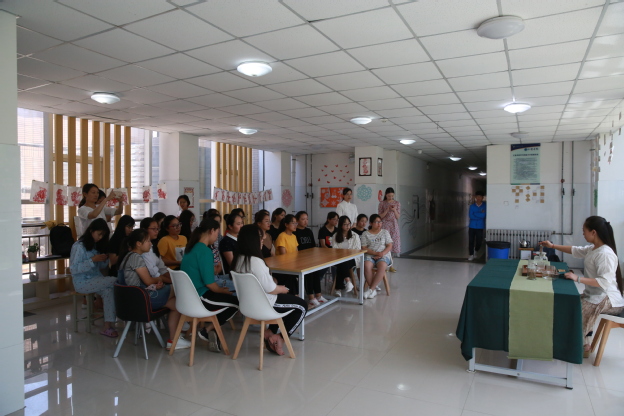在茶艺展示环节,仁智书院特邀校外高级茶艺师李海霞为大家讲解茶文化。“我们取物,有远有近,尽量不发出碰撞的声音……”伴随着李海霞教授的娓娓讲述,茶艺师的动作也是行云流水、美不胜收。浓郁的茶香遍布一方空气,引得众位学生争相向李海霞教授了解泡茶知识。随后,四个体验模块也开始如火如荼的进行,无论是讲究心灵手巧的手工DIY,还是智慧与谋略并行的五子棋“战场”,又或是“茶文化知多少”的知识大比拼,都让大家乐在其中。熙熙攘攘的人群中还不时传来欢呼声,一片热闹景象。同时,现场还展示了书院通识课程《艺术鉴赏》实践成果,学生生动传神的画作和惟妙惟肖的手工制品,引得了许多学生驻足观看。