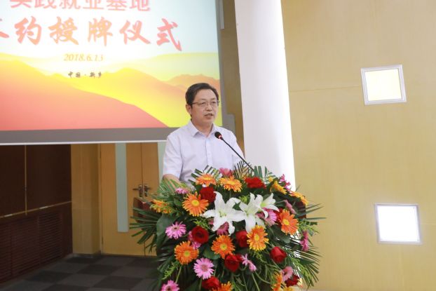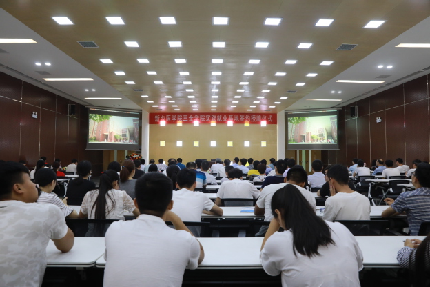 仪式在我校宣传片的播放中拉开序幕。首先,王金文对前来参加仪式的各家医院的领导和来宾表示热烈的欢迎和衷心的感谢,他说,此次与十家理念先进、发展势头良好的县级人民医院共建实践就业基地是我校结合国家分级诊疗制度改革,推进学校战略转型的一项重要举措。通过让学生实习前与意向工作单位达成实践就业协议,先进入三甲医院实习,提高眼光与见识,后转至意向基层县级医院实习,丰富基层工作经验,实现实习与就业的无缝对接。既能有效提高学生就业率与就业质量,又能提高工作单位对学生的工作满意度,还能为基层医院提供稳定、优秀的医疗人才,实现学生、用人单位与学校的三赢。