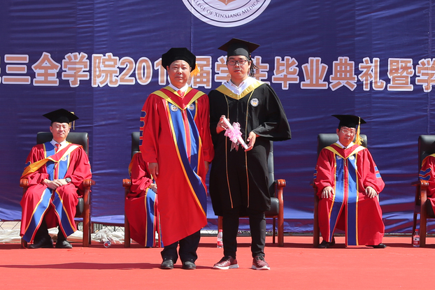 在神圣庄严的气氛中,杨捷和王志凯分别在两个校区为学士学位获得者代表扶正流苏、授予学位证书。