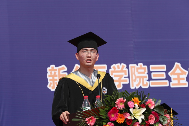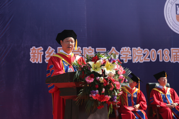王志凯书记在新乡校区作毕业寄语。他作为“同学们最熟悉的陌生人”,首先向大家表达了感谢与抱歉,接着送上了三句肺腑之言:一、“我希望,你们能读万卷书,行万里路”——身处光速发展的变革时代,社会万象正呈现指数式的变换,他希望大家树立终身学习的观念,不断积累知识、更新知识,敢于突破职业生涯的舒适区和人生境遇的天花板,将自己的所学、所知,大胆地运用到更广阔的天地中去。二、“我希望,你们能锲而不舍,持之以恒”——他说,历史一定会把等待机会的人、摇摆不定的人、畏首畏尾的人无情拍倒在沙滩上,但却会让创造机会的人、自信从容的人、勇敢搏击的人永远光芒万丈。这个世界除了一直在倡导“人人都献出一点爱”,更在倡导“人人都能对自己的人生负责”。他希望大家保持宁静的定力和稳定的耐力,坚定不移地朝着心中的理想扬帆远航。三、“我希望,你们能始终保持良好的修养”——他说,专业知识有保质期,学会做人才能受益一生;自我约束基础上的自由,顾念别人感受后的善良,自知、自制前提下的自觉,才是根植我们内心、注定会开花结果的良好道德修养。最后,他说:“希望大家保持‘该生优秀,永远免检’的卓越自信,做一个一天比一天过得更快乐的人。我们在‘全’世界,等你们‘王者’归来!”