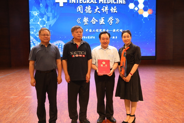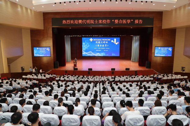 6月28日下午,中国工程院院士樊代明应邀来到我校平原校区闻德礼堂,为我校师生做了一场精彩的《整合医学》报告。我校院长杨捷、党委书记王志凯、我校党委副书记王金文、副院长秦国亮,党委副书记张钢、副院长沈雁霞、教育总督导毛兰芝、教务长杜华贞、财务总监王延生、学务长邱永建出席,八百余名师生参加,报告会由杨捷主持。
