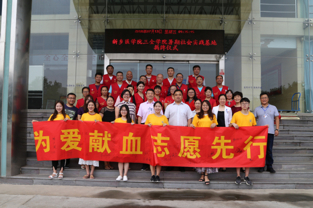 7月13日上午,我校在新乡市中心血站四楼会议室举行新乡医学院三全学院暑期实践基地揭牌仪式。新乡市中心血站站长郭喜彪、副书记卢涛,我校党委副书记张钢出席仪式。新乡市中心血站献血办负责人,我校团委、德馨书院的负责人及“不忘初心乐于奉献”暑期社会实践团队成员参加。