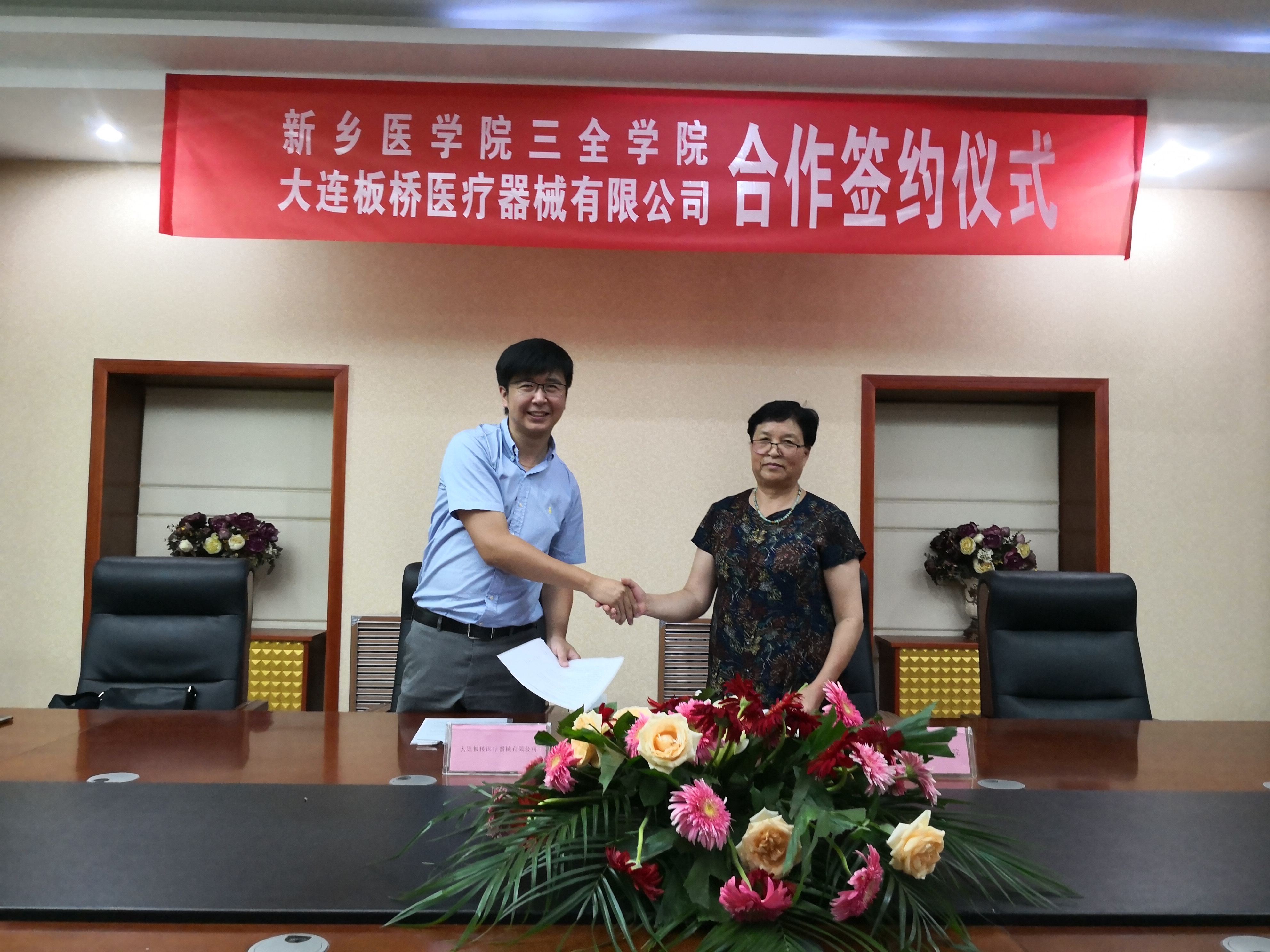 8月7日上午,我校与大连板桥医疗器械有限公司在新乡校区综合楼举行合作协议签约仪式。 大连板桥医疗器械有限公司大区经理张琦、郑州百胜医疗器械有限公司董事长田红兵、我校教务长杜华贞出席。郑州百胜医疗器械有限公司代表,学校光明眼科学院及相关部门负责人、教师代表代表参加。仪式由光明眼科学院执行院长元帅主持。