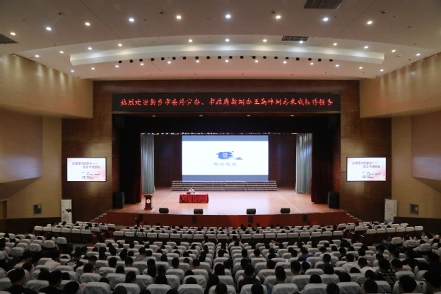 9月17日下午,新乡市委外宣办、市政府新闻办王高峰同志应邀来我校作《这里是你的新乡--新乡市情报告》,报告会在平原校区闻德礼堂举行。我校党委副书记张钢出席,相关职能部门负责人及八百余名18级新生参加。报告会由资讯中心主任陈宏主持。